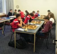 Bis auf das erste Brett waren wir DWZmäßig überlegen. An Brett 1 spielte Pieter Verhoef für uns. Sein Gegner war Patrick Terhuven (8. der letzten Deutschen U25 Meisterschaft). Pieter beendete den Mannschaftskampf und holte den letzten Sieg für Kleve. Trotz der DWZ-Überlegenheit an den anderen Brettern war uns klar, dass es nicht einfach wird. Krefeld ist im Aufwind, dort steht ein starkes Trainerteam dahinter. Alle Krefelder Spieler sind aus Erfahrung in der Lage, deutlich stärker als ihre DWZ zu spielen. Wenig überraschend war also nach 2 Stunden noch kein Spiel entschieden war. Es war zu beweisen, dass unsere Jugendlichen die stärkeren sind. Es wurde deutlicher als ich es dachte. Kein Spiel sah jemals verloren für uns aus. Die spielentscheidenden Fehler machten nur die Krefelder. So setzten sich fast alle Spielstärken durch. Den Anfang machte Dennis Hoenselaar. Kurze Zeit später ging es dann Schlag auf Schlag. Elyse Habersetzer, Justus Wiegersma und Kevin Verfürth konnten ihre mittlerweile erspielten Gewinnstellungen umsetzen und die Punkte einfahren. Danach musste man ein wenig warten, bis Benjamin in ein Remis einwilligte. Er konnte seinen minimalen Vorteil nicht in einen Sieg umwandeln. Pieters Spiel ging nach 5 Stunden zu Ende und setzte den Schlusspunkt. Er zeigte, dass aktive Figuren mehr Wert sind als eine Qualle. Das Endergebnis von ½:5½ für Kleve war letztendlich durchaus verdient.